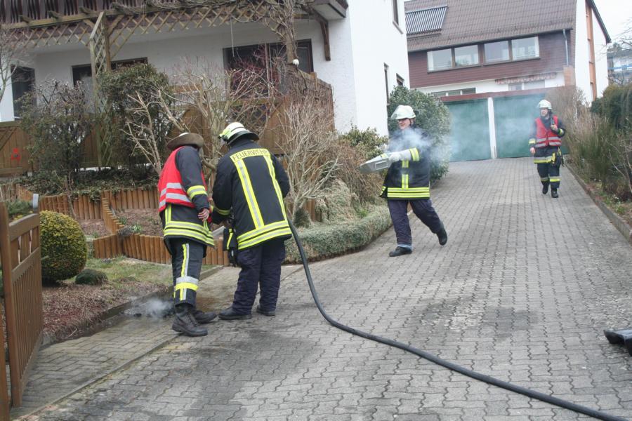 Hinweis der Feuerwehr: Sollten sie in ihrer Wohnung einen Kaminbrand bemerken, bitte sofort den Notruf absetzen. In keinem Fall selbst mit Wasser löschen, dadurch entsteht Explosionsgefahr. In dem brennenden Kamin herrschen ca. 1000 Grad C. Aus einem Liter Wasser entwickeln sich 1700 Liter Wasserdampf. Dies könnte unter Umständen für jeden ohne die erforderlichen Kenntnisse zu einer tödlichen Falle werden.