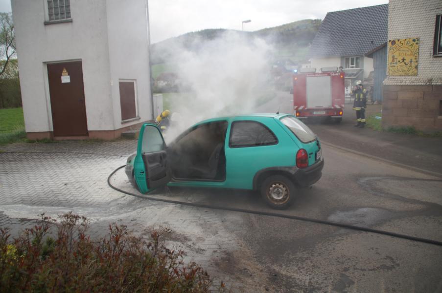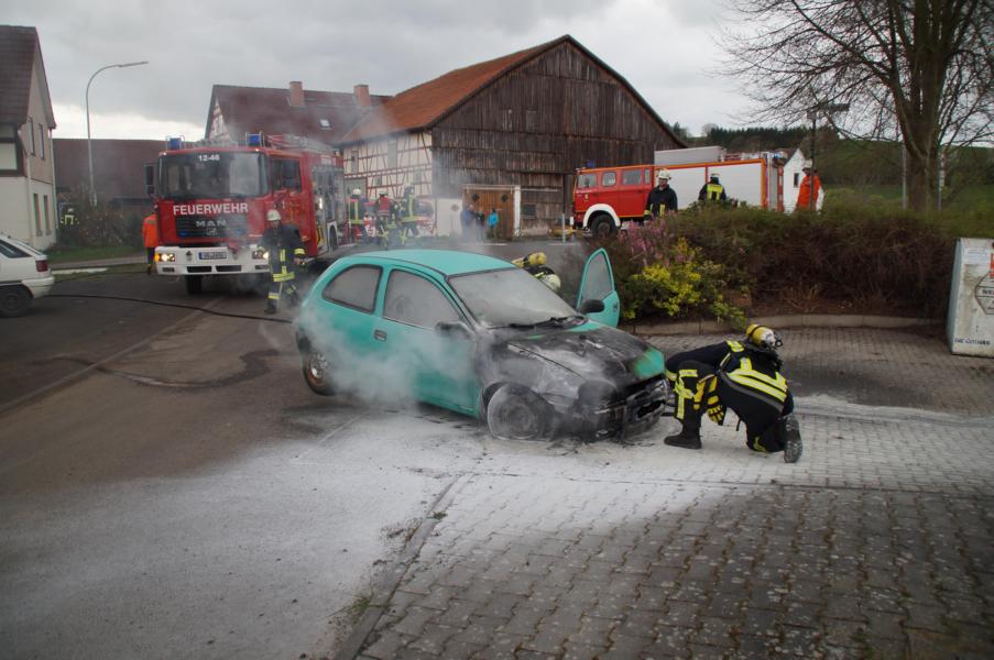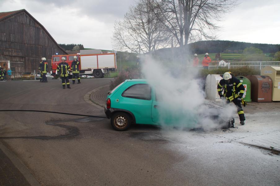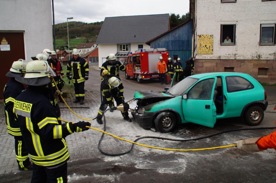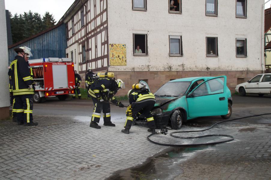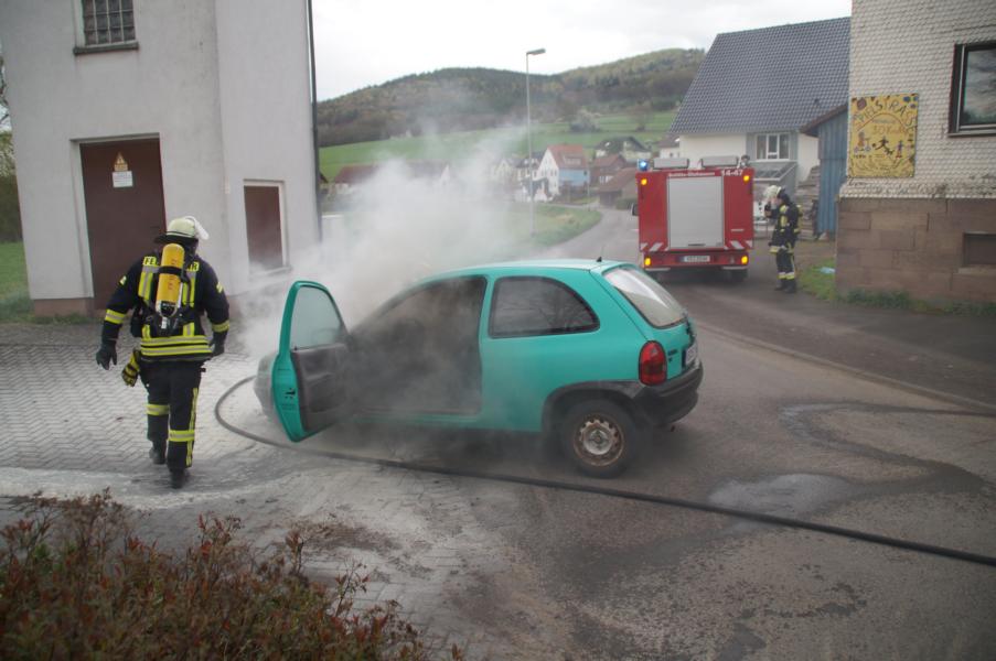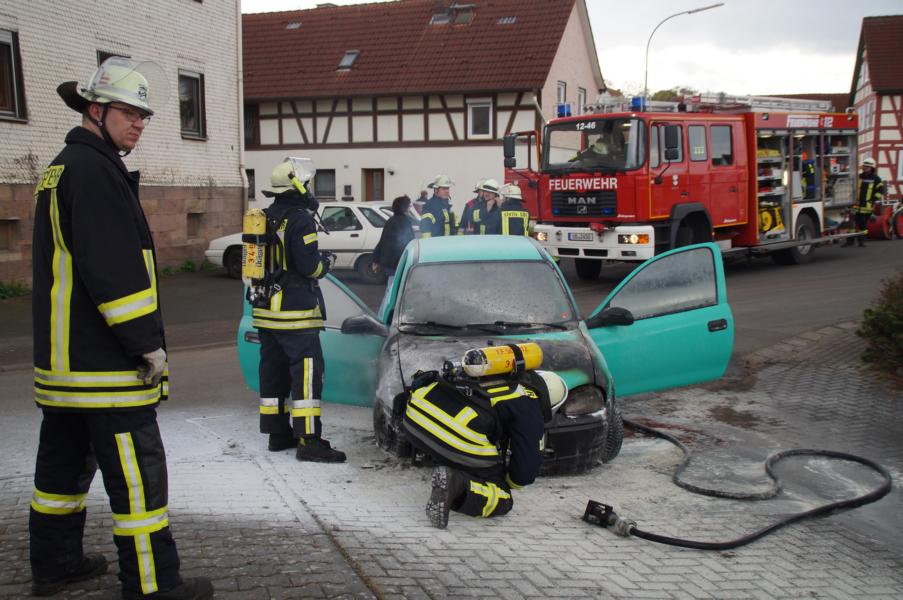Dem schnellen Handeln und Reaktionsvermögen einer PKW – Fahrerin ist es zu verdanken, dass ihr und ihrem Sohn „nur ein“ Schreck und die Bilder ihres rauchenden Fahrzeugs wahrscheinlich in Erinnerung bleiben. Am Dienstagnachmittag gegen 17.35 Uhr wollte besagte PKW - Fahrerin zusammen mit ihrem Sohn eigentlich nach Schlitz fahren. Beide kamen aber nicht weit. Bereits kurz nach dem Start an ihrem Wohnort, Ützhausen – Borngasse, qualmte es aus der Motorhaube, wenige Sekunden später bog sich auch schon der Lack der Haube. Geistesgegenwärtig lenkte sie das Fahrzeug in den nur wenige Meter entfernten Stadtweg, gleichzeitig forderte sie ihren Sohn auf sich seinen Schulranzen zu schnappen und auszusteigen, die Mutter folgte dem Kind sogleich hinterher. Die Alarmierung der Ützhäuser Wehr erfolgte durch Sirene. Beim Eintreffen der Einsatzkräfte brannte die Vorderfront des Fahrzeugs. Per Erstangriff und mittels Pulverlöscher wurden die Flammen erstickt. Die Feuerwehr Schlitz unterstützte die Löscharbeiten anhand der Schnellangriffseinrichtung. Die klemmende Motorhaube musste anhand des eingesetzten hydraulischen Spreizers geöffnet werden. Erst dann konnte der Motorblock abgelöscht werden.