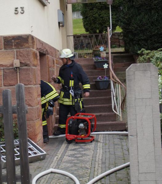 Kellerräume mittels eines Atemschutzgerätetrupps, stieß man auf die Ursache der